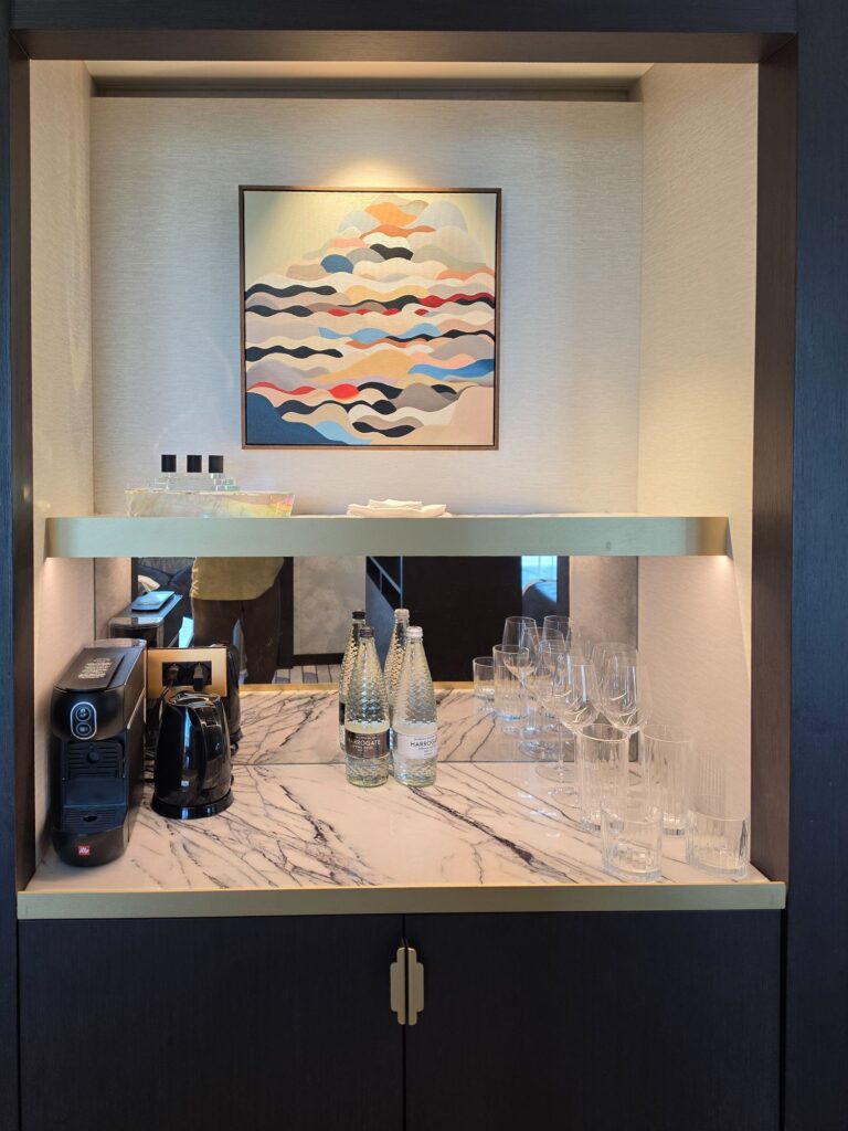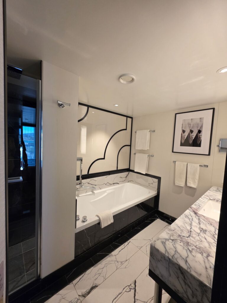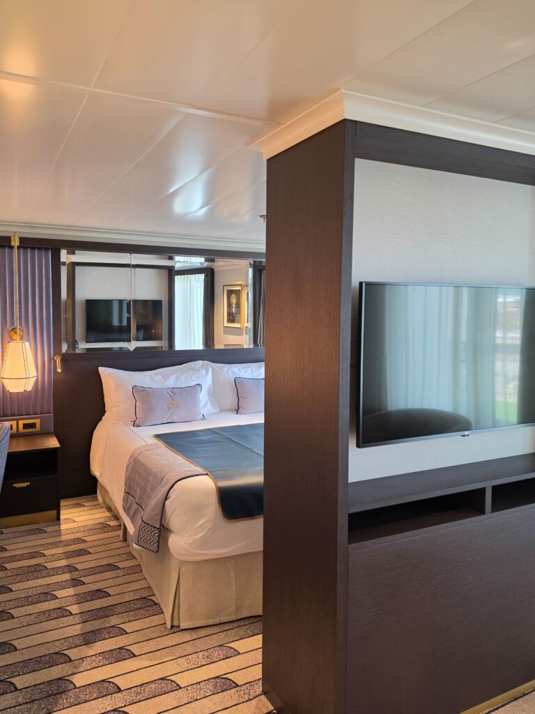 Now to unpack. We could have had our butler do this, yes really! But we have yet to see them, nor the room steward. Thankfully, this suite has lots of drawers and cabinets. No walk-in closets, but that’s OK. Just could use about three more hangers.
