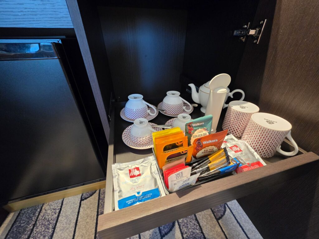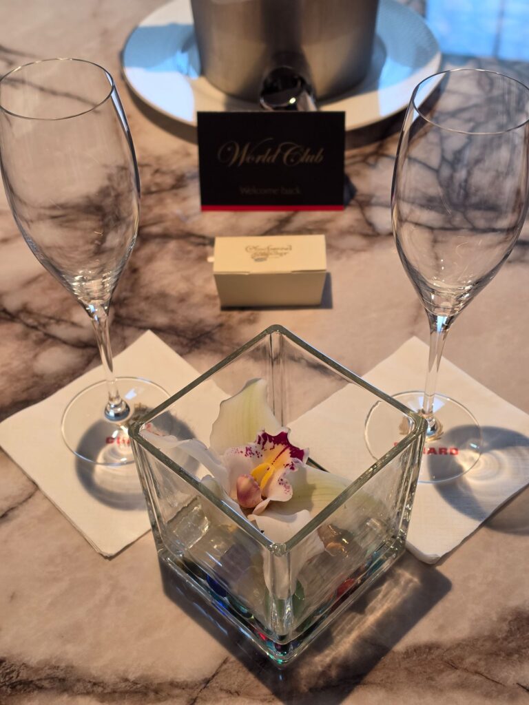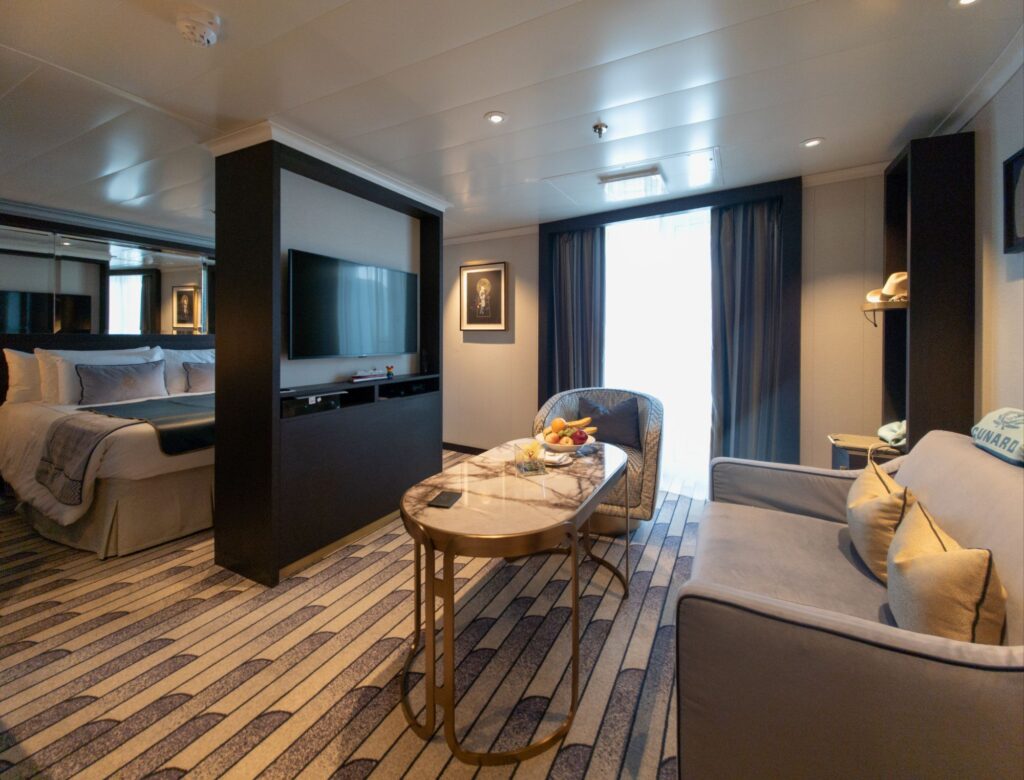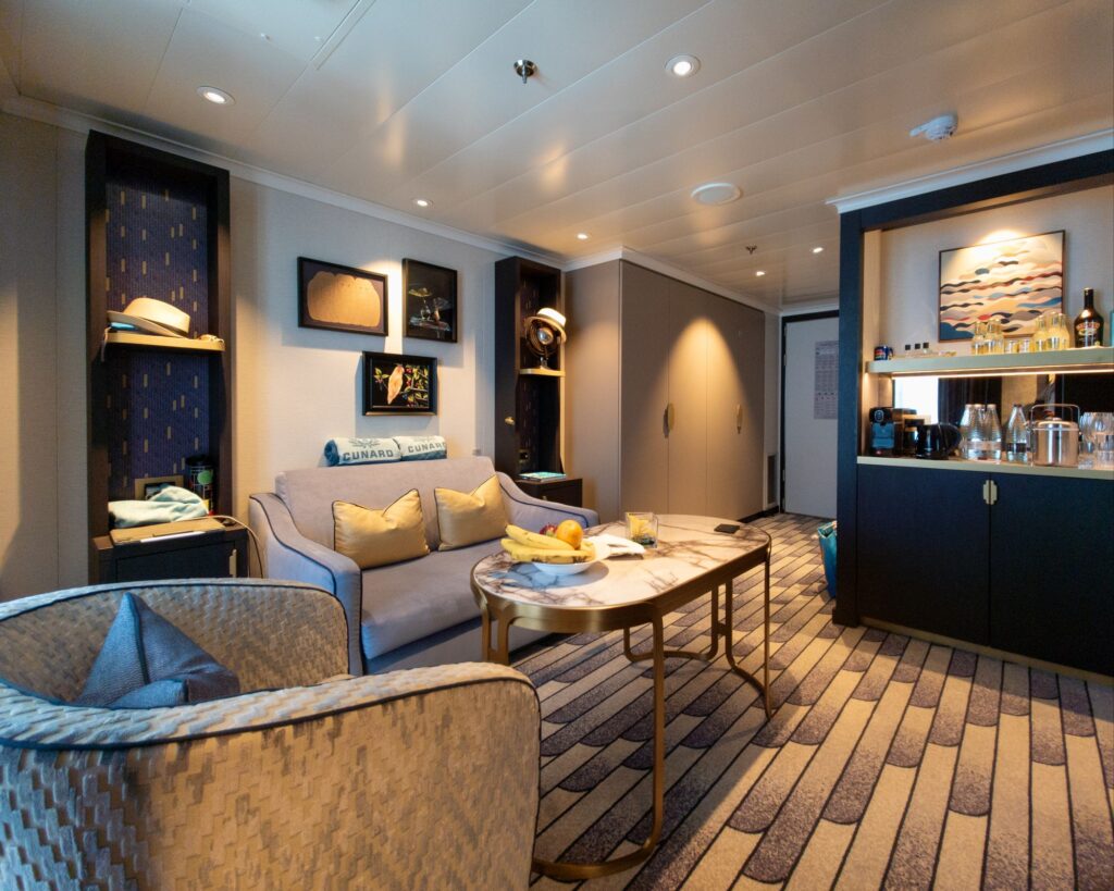 First, a little about cabins and cabin categories in Cunard. There are four categories of cabins, each associated with there namesake primary dining room. These are, from most economical to least: Britannia, Britannia Club, Princess Grill, Queens Grill. More about the dining options by room category here: Cunard Dining