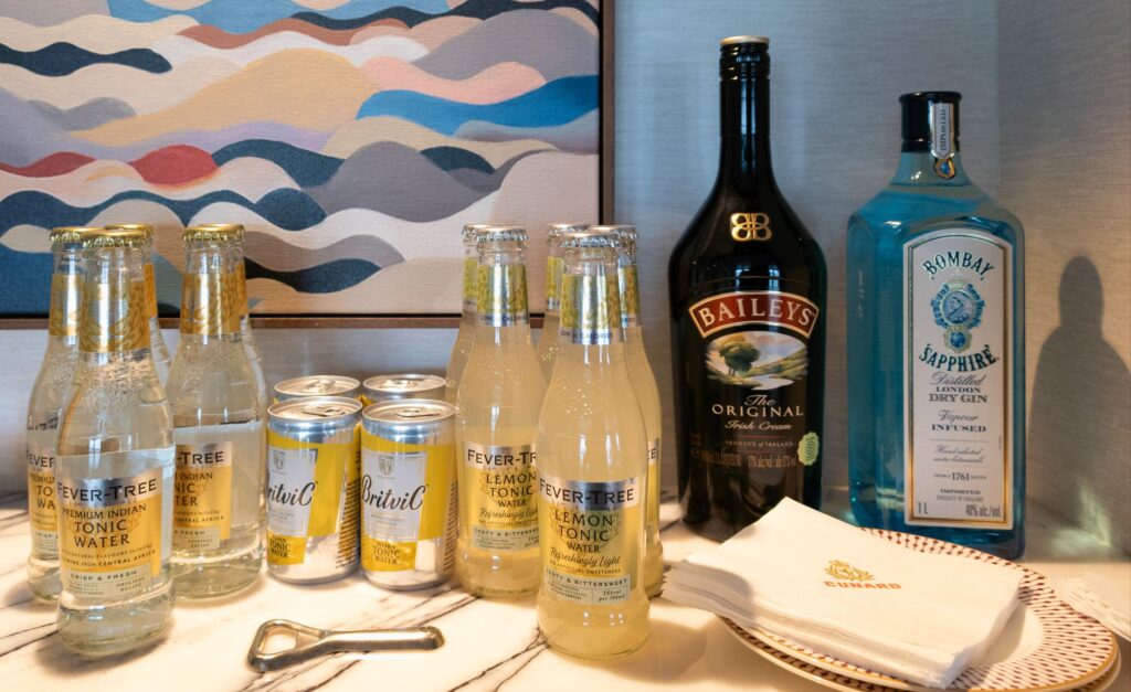 Our butler, Ludel, did stop by to introduce himself. After a quick run down of the room features, he took our in-room bar order. The suite is entitled to two bottles of booze or wine. If we finish two whole liters, he’ll bring more! We opted for a bottle of gin and one of Baileys which he quickly brought along with a variety of tonics for the gin. Shhh…don’t tell the butler, but I think the booze will be coming home with us.