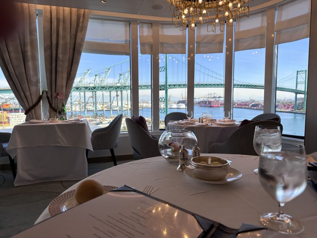 This cruise is the next to last segment of Queen Anne’s 2026 World Voyage. She left Hamburg, Germany on January 6th, returning to Hamburg on May 2nd. There are about 1,000 passengers who have been aboard the whole journey! Turnover here at Los Angeles/San Pedro was about 700, we’re told.