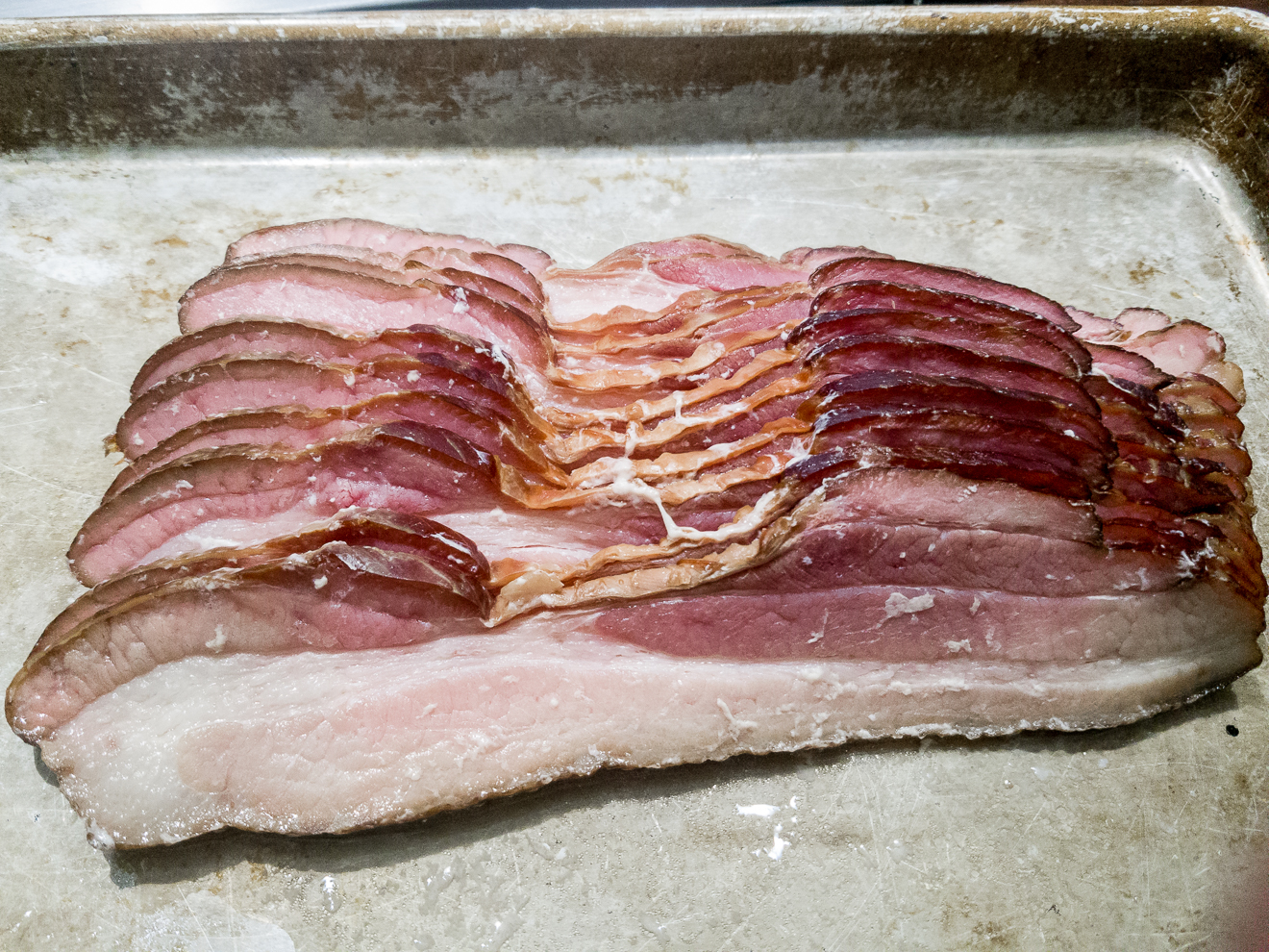The ingredients are simple, just 1 Lbs of bacon. It can even be from you freezer. Here in Seattle, we're able to get Hempler's Uncured Thick-cut Bacon. It's still smoked but no added nitrates*. We think it tastes a little more "natural" and not quite as "salty." You're call on the cured vs uncured. Just saying, that's what we used.