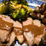 Add a couple of your favorite veggies to the platter, and pour on a little of that sauce you made over the meat.